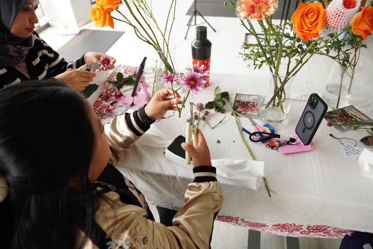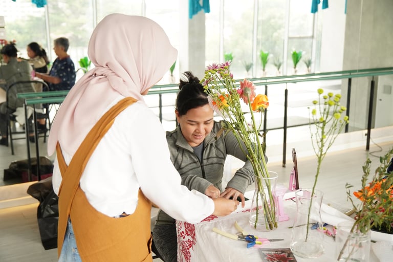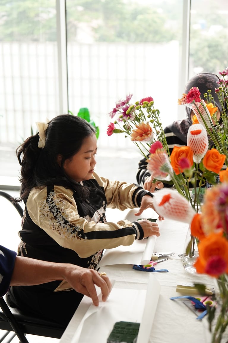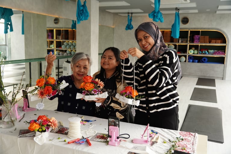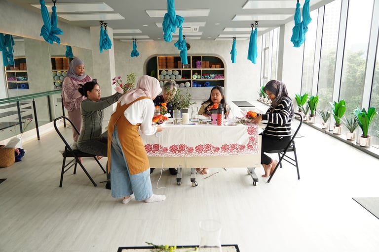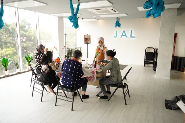 Together with Jal Yoga, Mekar Bersorai held From Flower to Power at Jal Yoga Pakubuwono, a refreshing session that combined a one-hour flower workshop and a Pilates Reformer class. Participants created their own Flower Candy arrangements, blending creativity and mindfulness in one inspiring afternoon.